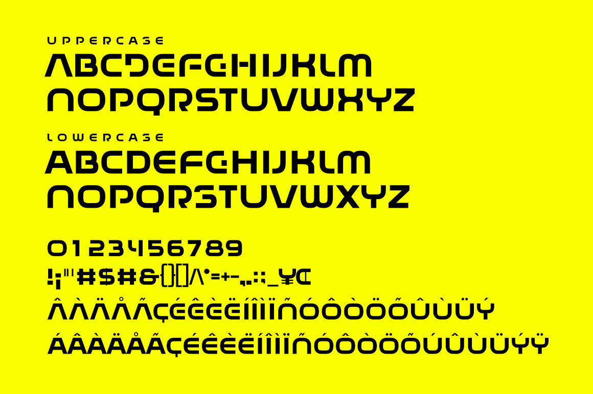 Its foundation lies in strong, geometric forms and clean, sans-serif lines, projecting a futuristic and bold presence. The letterforms are often wide, with a consistent stroke width that ensures clarity even at smaller sizes